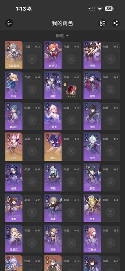 主打:遐蝶2+1/昔漣2+0/風菫2+1/緹寶1+0/阿格萊雅0+1/黃泉1+1/黑天鵝1+0/花火0+1/卡夫卡1+0,其餘的看圖片上。