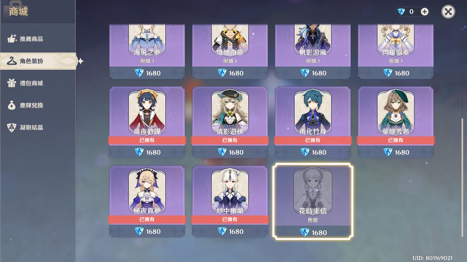 【女、60等、28金角、11金武】【亞服|退坑】雷電將軍1命專武|神里綾華2命專武+造型|芙寧娜專武|優拉專武