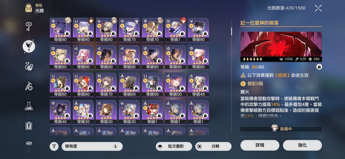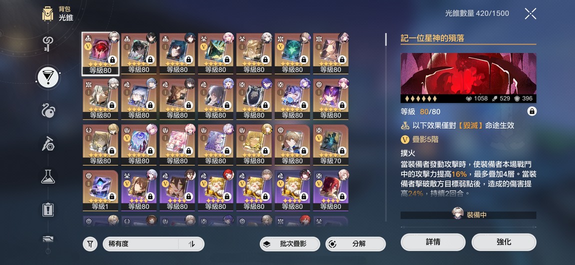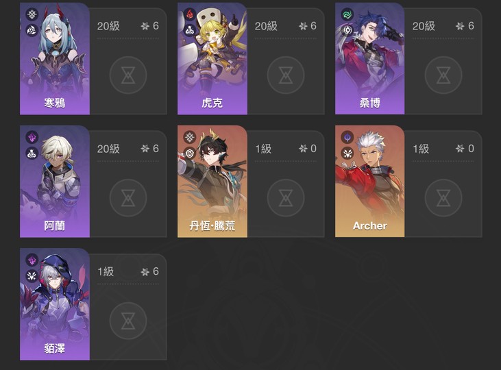 【女、70等、33金角、22金專】【退坑賣 可議】遐蝶2+1、緹寶0+0、長夜月1+0、風堇1+1、星期日1+1