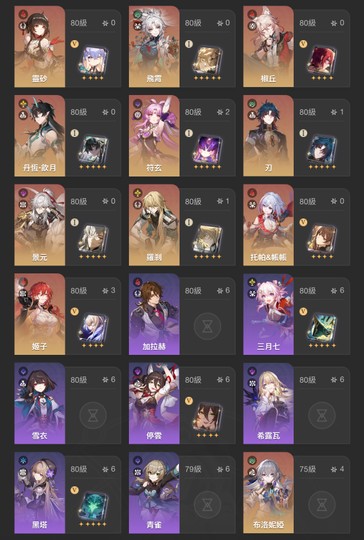 0+0:緹寶、花火、砂金、靈砂、飛霄、椒丘、托帕