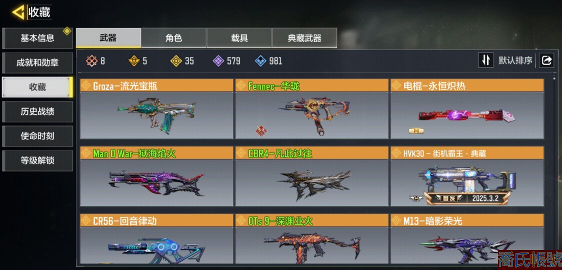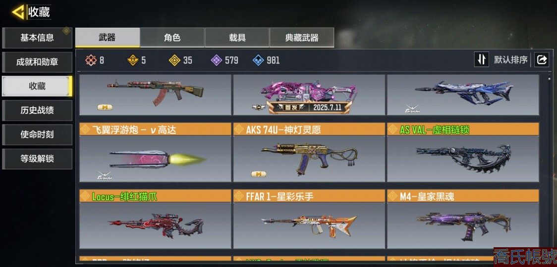 【11等】8神話武器,5典藏武器,35傳說武器,0神話角色,2傳說角色,0傳說載具,典藏