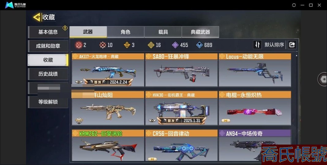 【OBSKOJC767442】黃金,【道具展示僅為賣家勾選填寫,具體以實際遊戲內為準】****【店長推薦撿漏號!】【10神話(2滿級)/16傳說(3典藏)】 SMG5-潮海汐月 Grau 5.56-源核天災 Fennec-無畏 EM2-蒼穹 S**** X9-瞬影斬決 AMR-亞特蘭蒂斯 Krig 6-冰霜巨龍 CX-9-希爾芙的庇佑 XM4-天策含光 MG42-永別 AK117-炫彩冬日 ****-機要特工 DL033-炫彩冬日 AK47