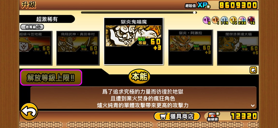 喵魔+4 阿激拉+3 真田幸村+2 地藏+1 女俠+3 嬰兒世界+3 前田慶次+4