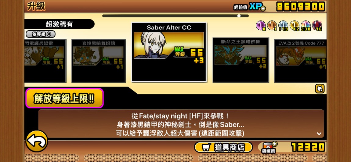 黑獸+7 黑佛+3 加迪+2 黑舞孃+1 舞孃+1 英傑+1 白無垢+1