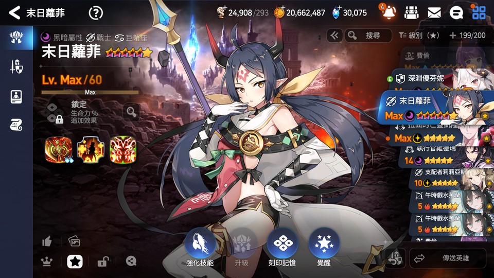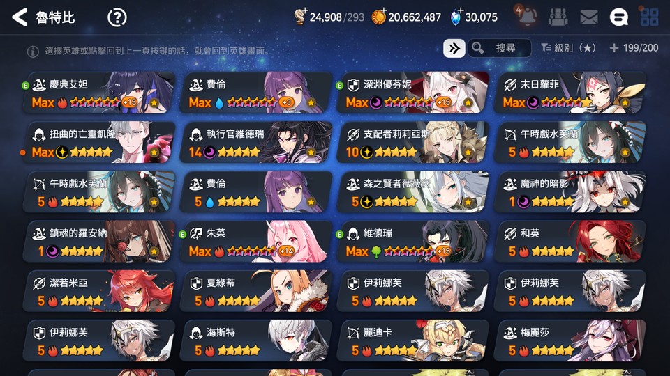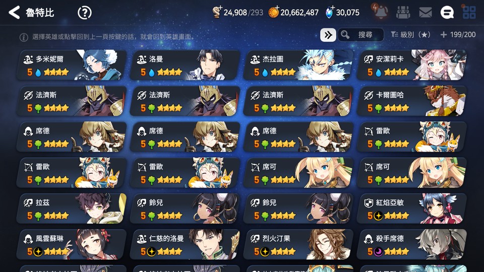 ▶適合新手、中手、小號,有完美開局多隻TOP光暗五星,不是資源玩爛的帳號,培養都往正確方向,多書籤跟天空石讓接下來抽合作角色都不是問題