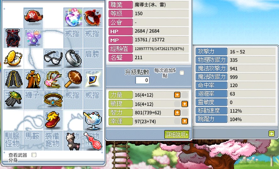 【150等、魔導士(冰雷)_大魔導士】150大冰雷 乾941AP 三寶神項鍊