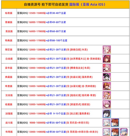 下單前先看清楚安卓或者是IOS 區服 買後不退