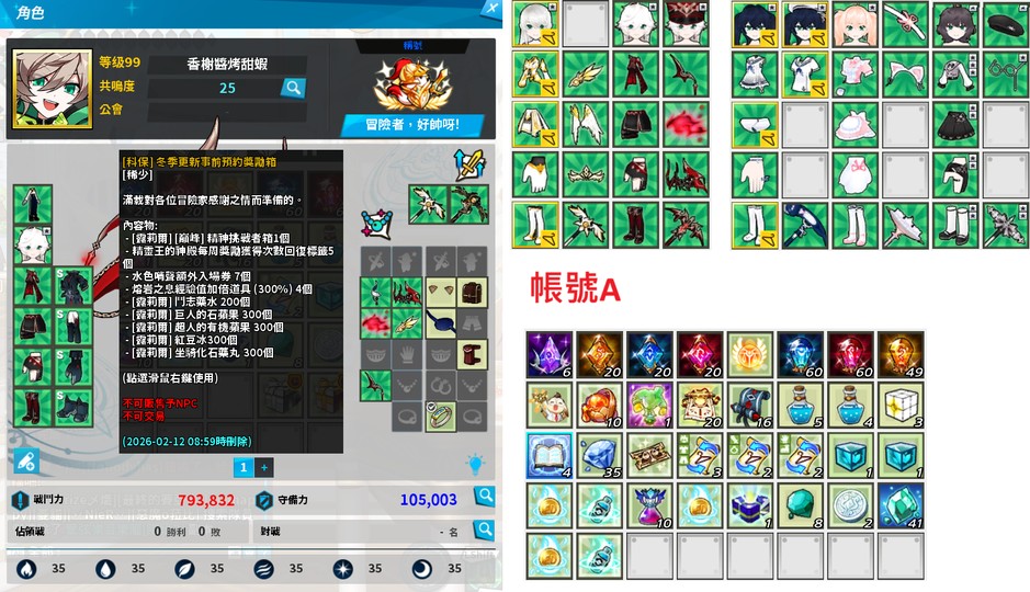 A帳號-1200實收 (精挑+冰裝2套+時裝3套)