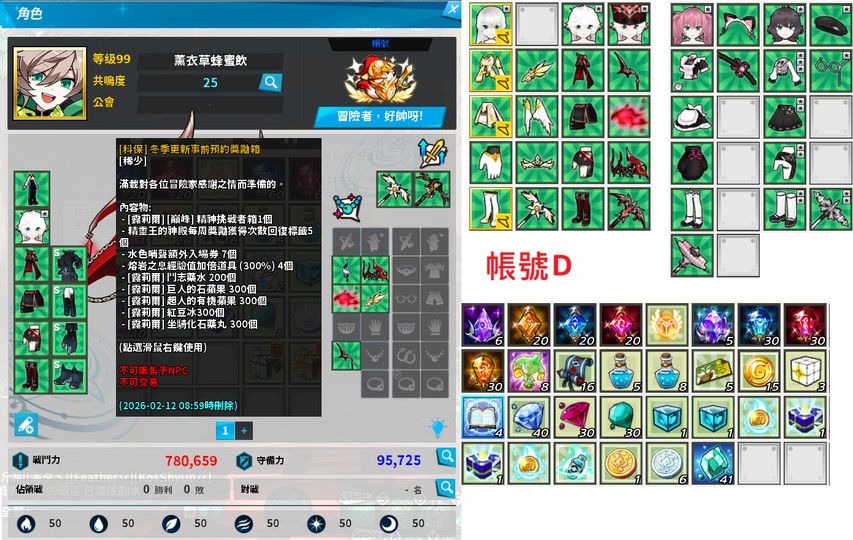 活動帳號 冰機號 莉緹亞 精挑+兩套冰裝+時裝