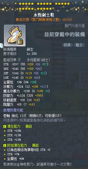 【永恆劍鞋】25星 36%力 附加+2 76 永恆劍士鞋 全B