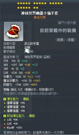 【神秘冥界幽靈小偷手套】三爆手套.22星.雙傳.%幸