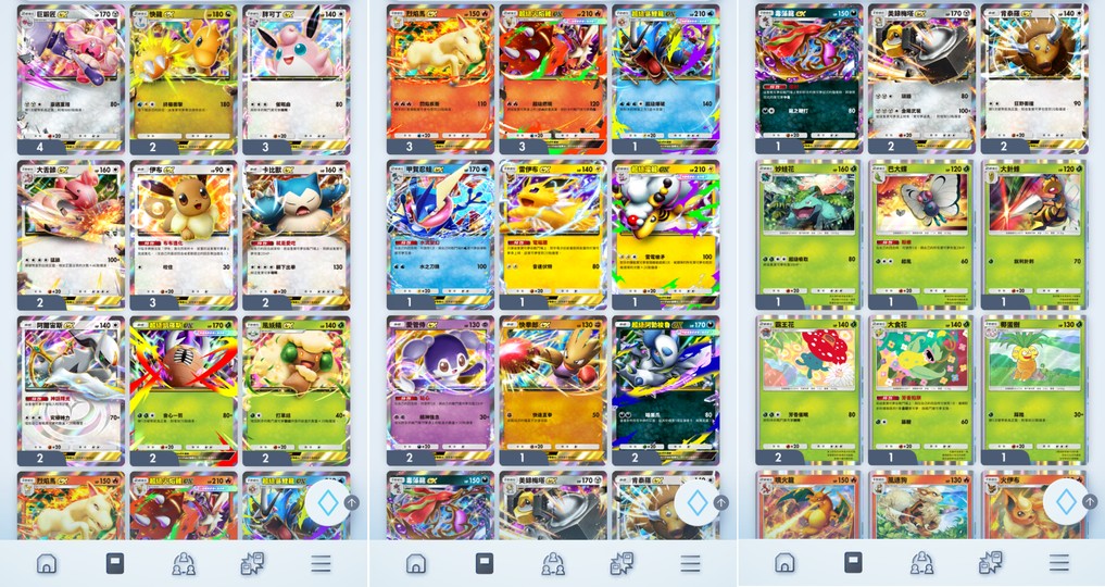 ✦ 最強基因:226/226(全圖鑑) ║ 幻遊島:68/68(全圖鑑) ║ 時空激鬥:155/155(全圖鑑) ║ 超克之光:75/75(全圖鑑) ║ 嗨放異彩:72/72(全圖鑑) ║ 雙天守護者:155/155(全圖鑑) ║ 異次元危機:69/69(全圖鑑) ║ 伊布花園:69/69(全圖鑑) ║ 天與海的指引:161/161(全圖鑑) ║ 未知水域:71/71(全圖鑑) ║ 超級崛起:215/226 ║ 紅蓮烈焰:27/69 (最新卡包!)