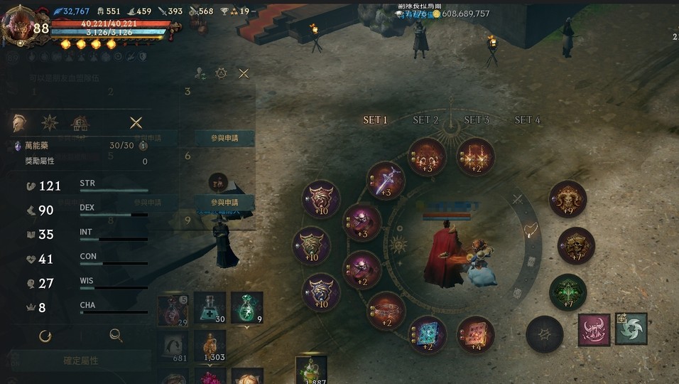 【素質】:等級88.57 血量40221、攻/命393/568、防/魔防551/459、減傷/PVP減傷174/58、暈命/抗暈30/103%