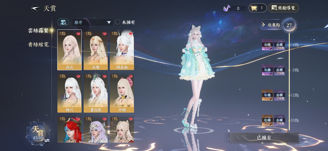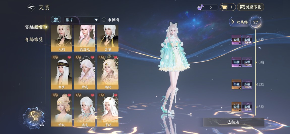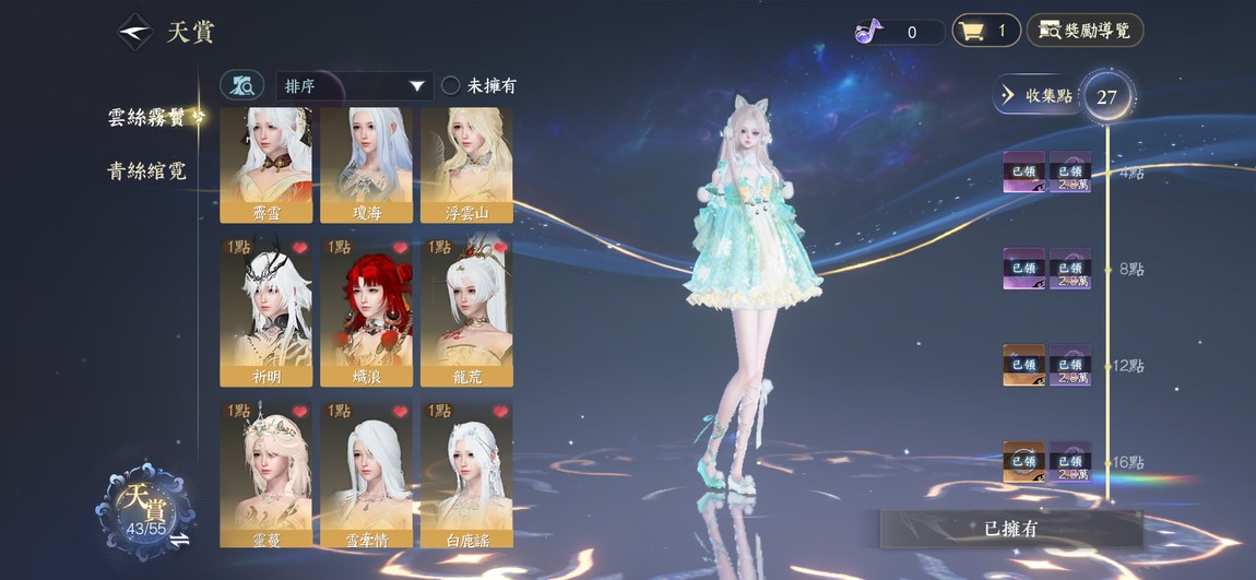 【69等、瑤光聽雪、女、九靈】瑤光 秋水外觀號 已用79顆天賞,未用7顆,有3轉盤頭,第一賽年神兵,請帶價私訊