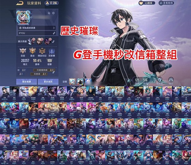 【Garena帳有綁定、璀璨傳說、V9、125英、517造】主打500造綁好超值帳(超大砍先不用)