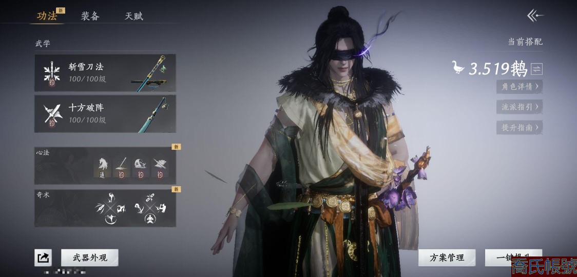 【11等】等級100,風華值20222,武林造詣3.519鵝,已用八音竅(不含染色)1,