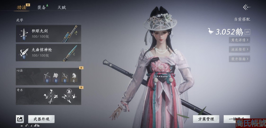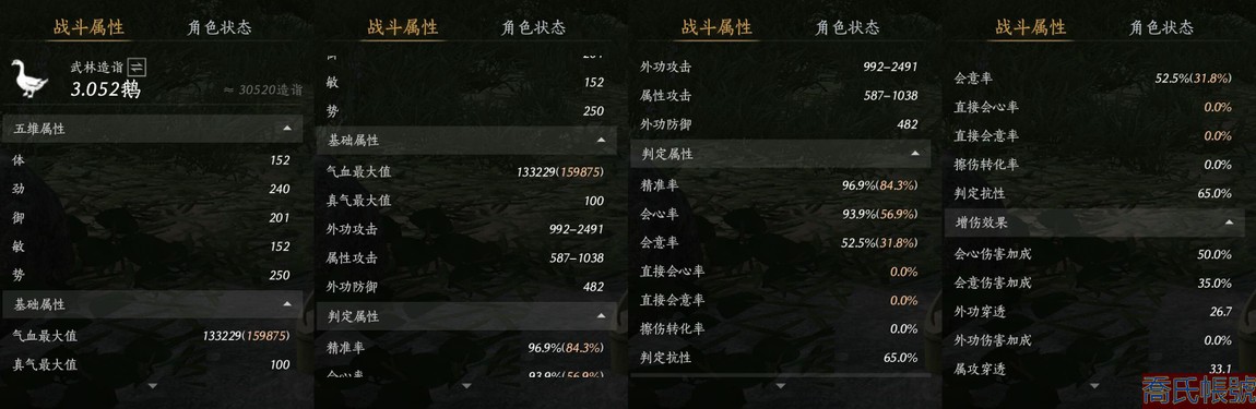 【11等】等級100,風華值3020,武林造詣3.052鵝,清河探索4級,開封探索4級,