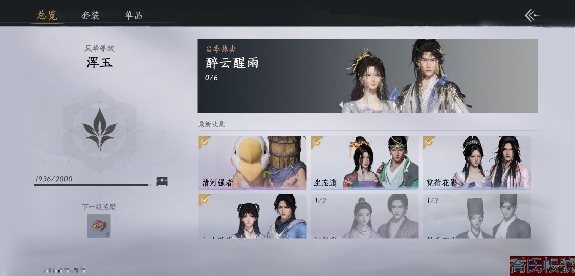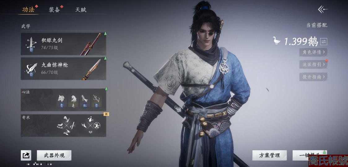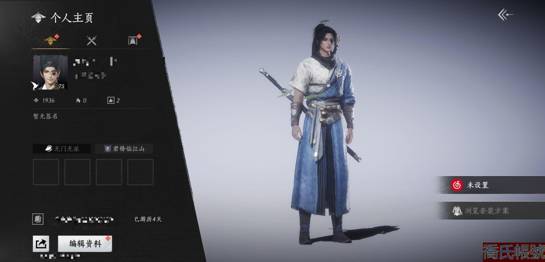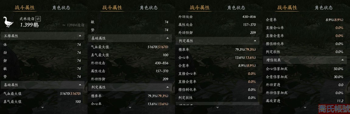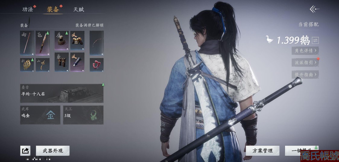 【11等】等級75,風華值1936,武林造詣1.399鵝,未用八音竅1,清河探索4級,套