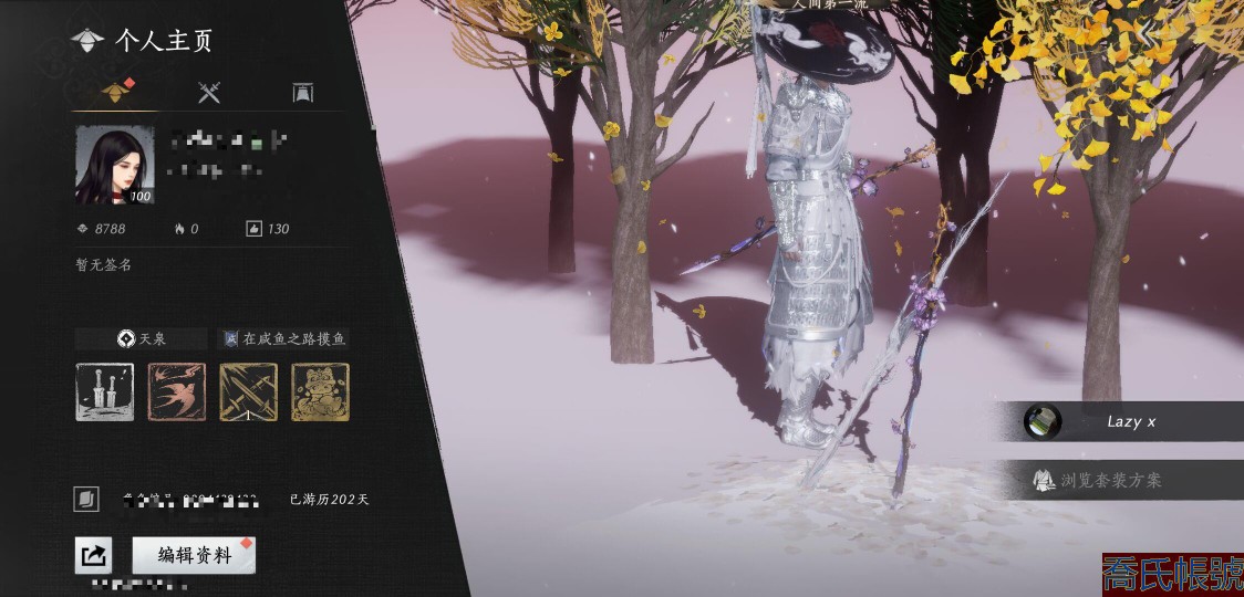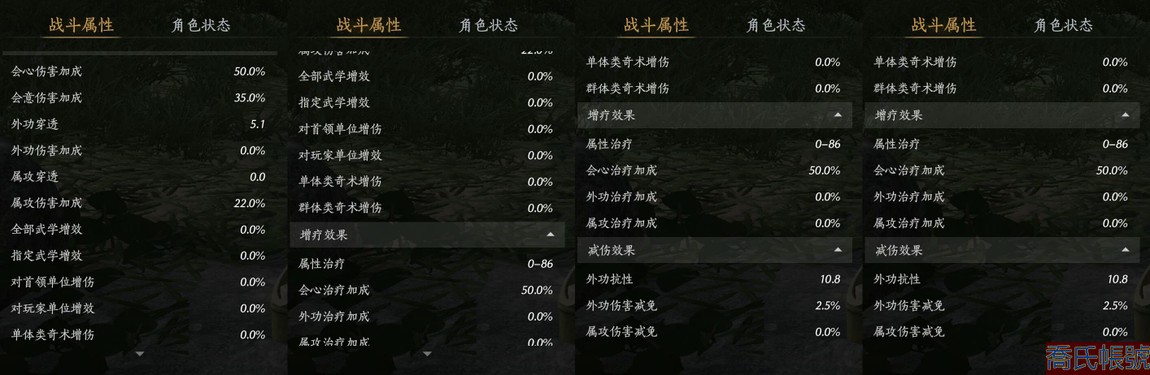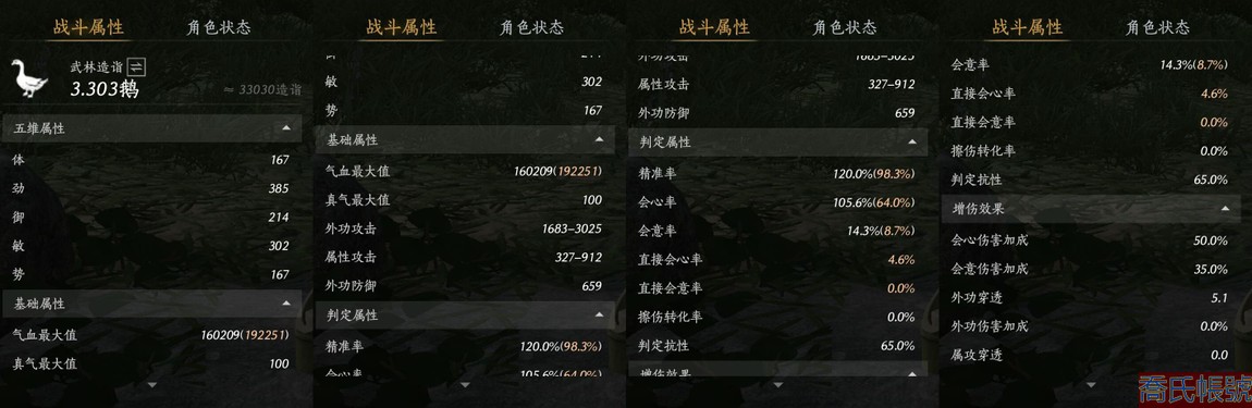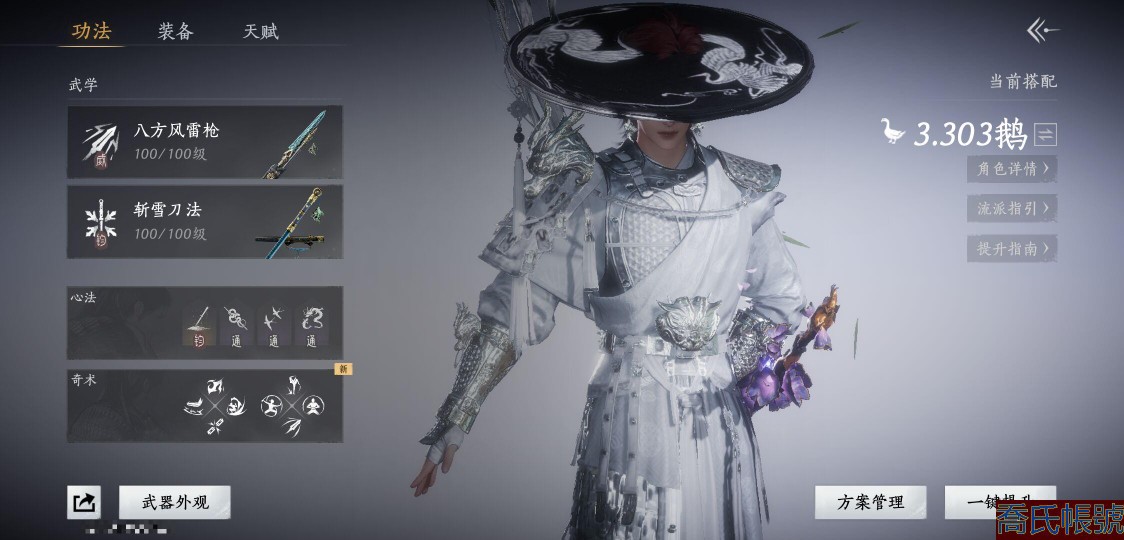 【11等】等級100,風華值8788,武林造詣3.303鵝,已用八音竅(不含染色)1,未