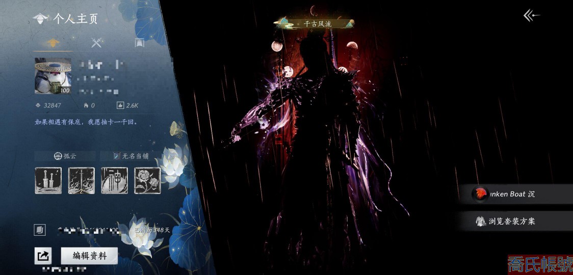 【OBYPCFE443642】絕境,等級100,風華值32847,武林造詣3.640鵝,已用八音竅(不含染色)4,未用八音竅1,清河探索6級,開封探索6級,河西探索6級,不見山探索3級,套裝數量23,坐騎數量4,戰令等級51,套裝:烏紗紅漪/晏平生/如碎霜天/蜀戲春/清河強者/金池鯉/翠羽顧/梨花淚/逐紅花/一心三藏/舞花間/丹雀/遙夜行/松花玉蘭/鵲踏枝/午風清/射虎南山/落花聞詔/青草原/翠羽顧/馳走西風/雲中錦書/縱橫;武學奇術:墨染塵;武學心法:十方破陣100級/斬雪刀法100級/易水歌六重/霜天白夜六重/孤忠不辭六重/穿喉訣六重/徵人歸六重/斷石之構六重/極樂泣血六重;武器外觀:霜楓橫*2/霜楓訣/舞鱗光/試霜鋒/霜楓寒/霜楓愁/霜楓舞/颯陌耶/紅塵燼/霜楓盡;載具:白義/颯露子/盜驪/飛毛腿;披掛:如碎霜天;髮型:弄清影/烏紗紅漪/晏平生/錦瑟華年/如碎霜天;必得絕世次數:嫋嫋之音148次內,嫋嫋之音·綁135次內;【道具代幣以實際驗號為準】【賬號】t1戰力3.640,還有一顆八音竅沒用,cd還有1個月可以先綁應急