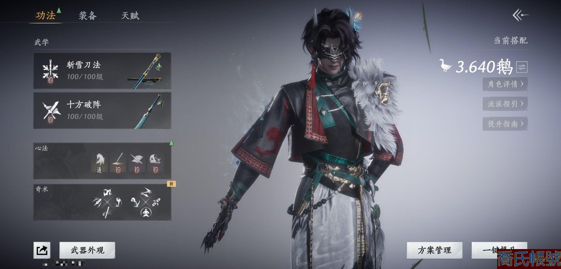 【11等】絕境,等級100,風華值32847,武林造詣3.640鵝,已用八音竅(不含染色