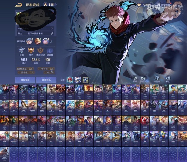 【Garena帳有綁定、星耀、V5、85英、159造】虎杖播報造型帳