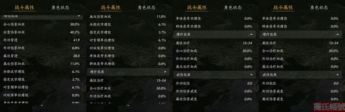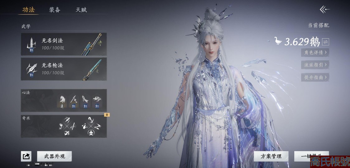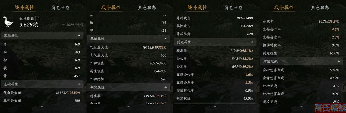 【11等】等級100,風華值35039,武林造詣3.629鵝,已用八音竅(不含染色)3,
