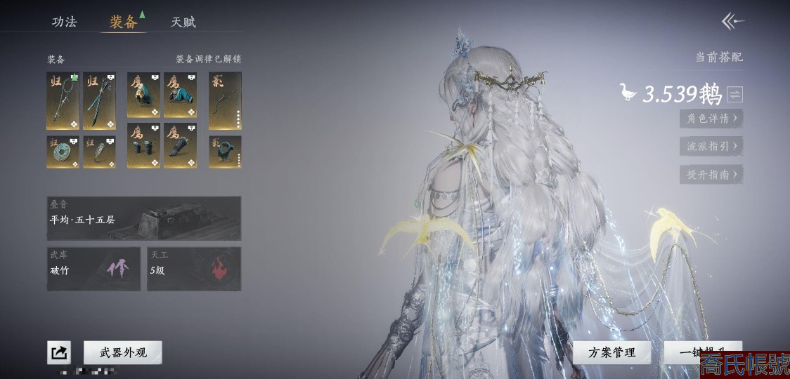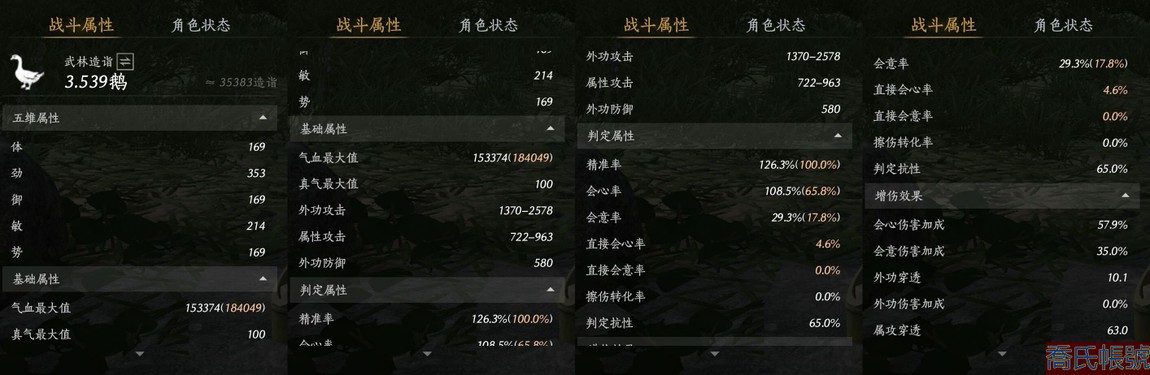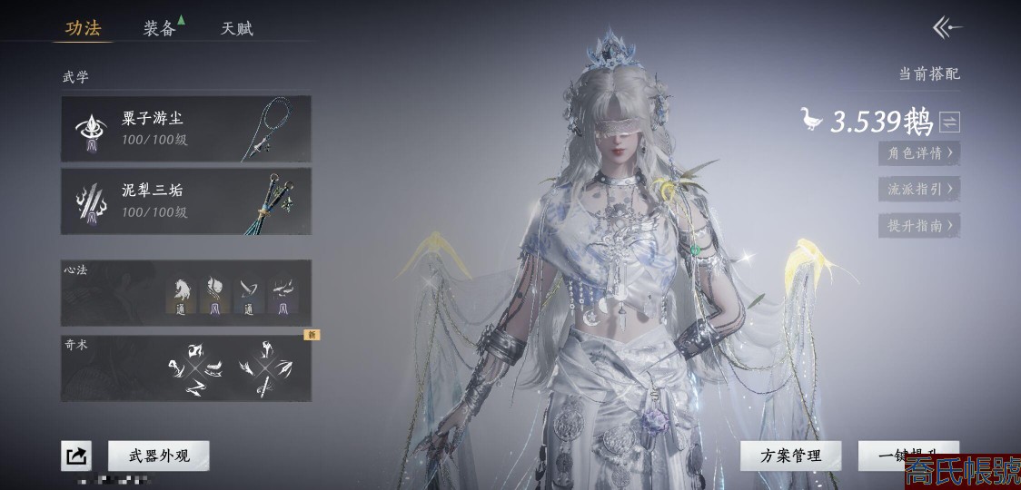 【11等】等級100,風華值24699,武林造詣3.539鵝,已用八音竅(不含染色)3,