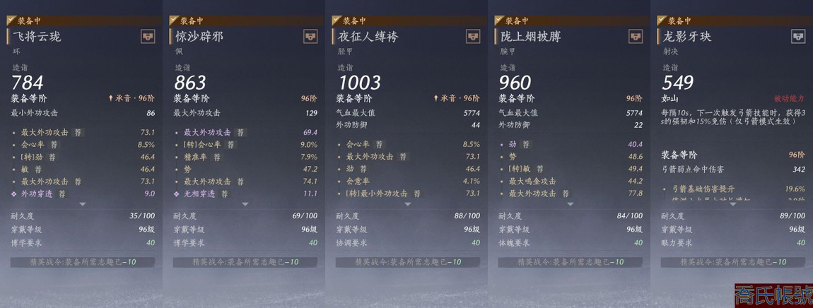 【OBYFEOP941442】等級100,風華值21484,武林造詣3.603鵝,已用八音竅(不含染色)2,未用八音竅1,清河探索6級,開封探索6級,河西探索6級,不見山探索3級,套裝數量21,坐騎數量3,套裝:烏紗紅漪/晏平生/如碎霜天/九間當鋪/紅塵書/霜寒天泉/清河強者/江湖客/逐紅花/一心三藏/遙夜行/射虎南山/落花聞詔/霜寒天泉/馳走西風/相思曲/嘯月/雲中錦書/縱橫/金灩玉團/山君嘯林;武學心法:十方破陣100級/斬雪刀法100級/易水歌六重/霜天白夜六重/徵人歸六重/穿喉訣六重/極樂泣血六重;武器外觀:颯陌耶/一箭雙鵝/試霜鋒;載具:白義/颯露子/盜驪;披掛:如碎霜天;髮型:烏紗紅漪/晏平生/錦瑟華年/如碎霜天;必得絕世次數:嫋嫋之音138次內,嫋嫋之音·綁148次內;【道具代幣以實際驗號為準】【賬號】3顆八音(一顆繫結未使用,一套碎冰冰),寶錢2600w(做做菜馬上夠一顆八音了),月卡120多天,戰令最近四期滿級。鈞鈞心法6重畢業號,大外3210,屬性合理,家業十級全自動。三套258,戰國套,落花套,採集馬,少量武器外觀,其餘如圖