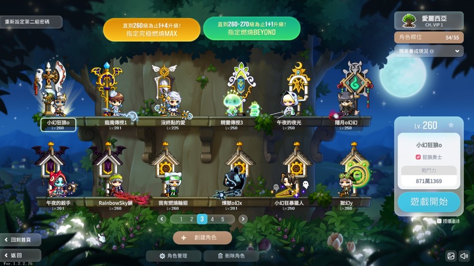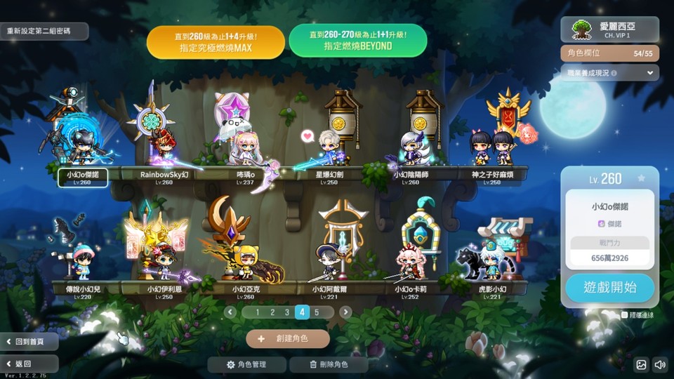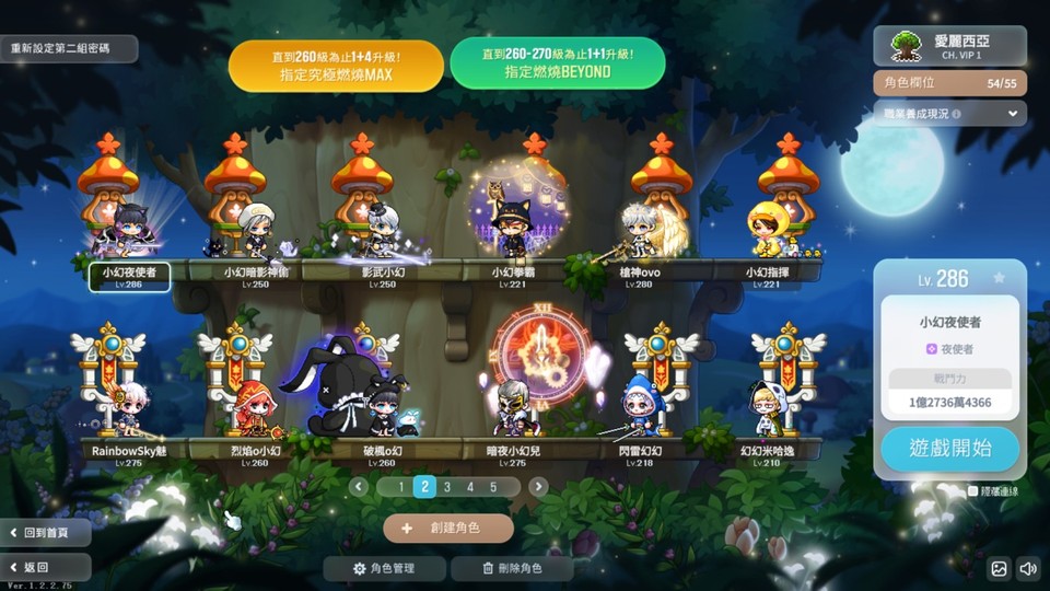 多本尊 有290凱殷(六轉進度100%) 286夜使者(六轉進度20%左右) 285主教(六轉進度30% 雙面神滿) 280神槍手 (六轉進度20%)275暗夜 275聖魂 272蓮