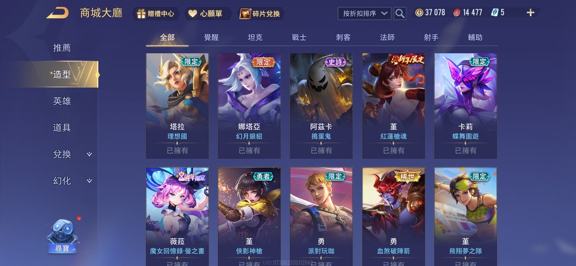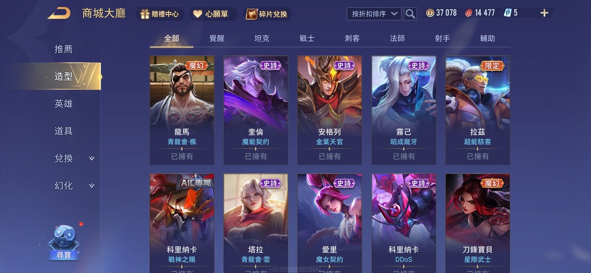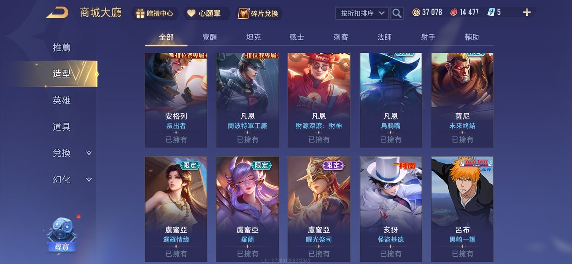 【Garena帳有綁定、戰場傳說、V7、124英、263造】納克玄冥害牙基德全套多盛典造型