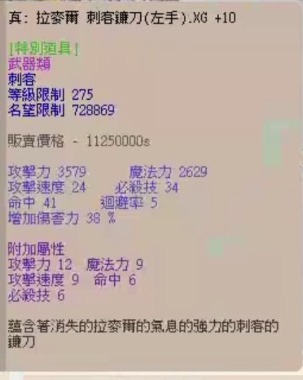 真:拉麥爾 刺客鐮刀(左手).XG+10