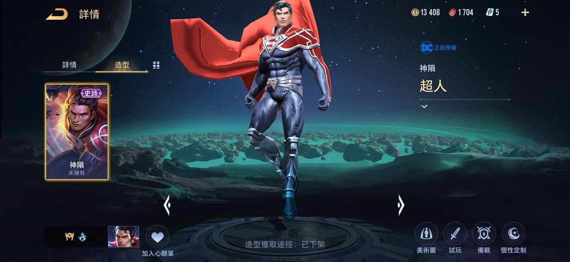 【Garena帳無綁無連、白銀、無VIP、1英、1造】收超人無綁無連帳號,有神隕造型佳,有神力女超人更佳,歡迎詳談!