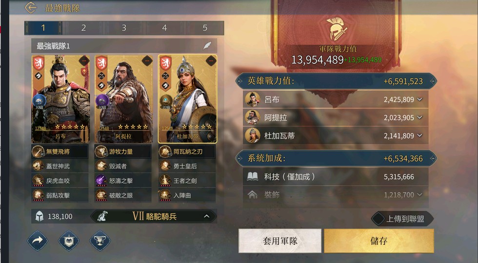 【33等】289服,4T7,7300戰V14,呂布1390萬,53萬帝國幣
