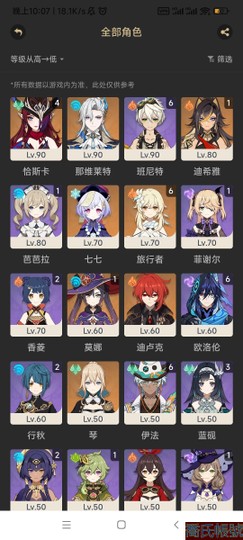 【多帳號賣場】56級,6黃,女主,五星角色:4命恰斯卡,那維萊特,恰斯卡;1個五星武器:精1