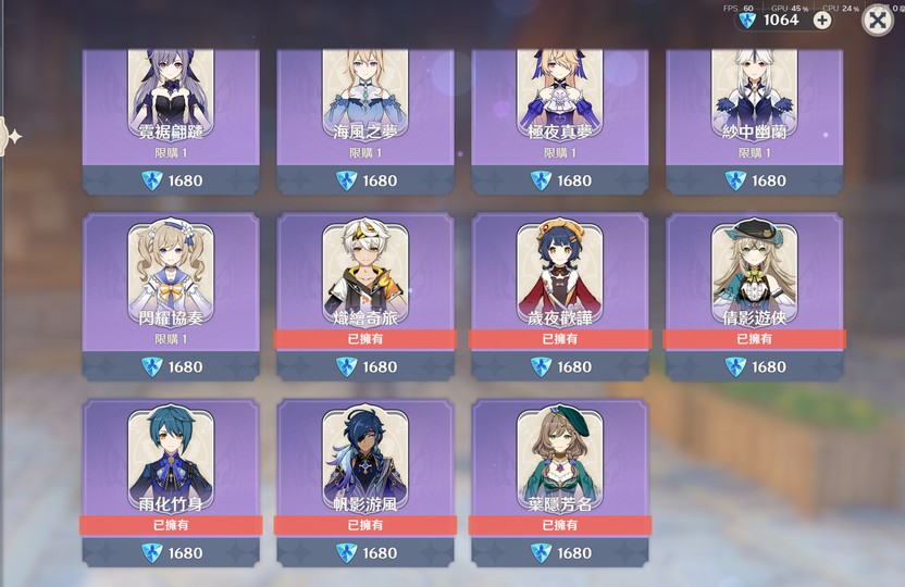 【女、60等、28金角、20金武】6命夜蘭 2命僕人 其他強力角色 13萬原石備戰少女 鐵道和絕區零2+1葉順光