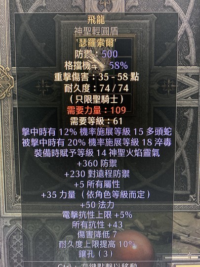 非天梯 飛龍盾 5屬性 43全抗神聖輕圓盾