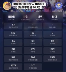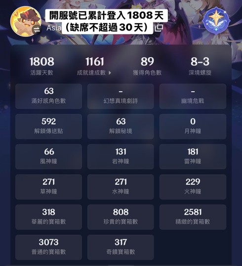 原神開服號已累計簽到1808天(缺席不超過30天)