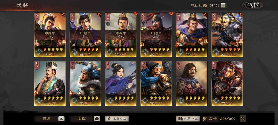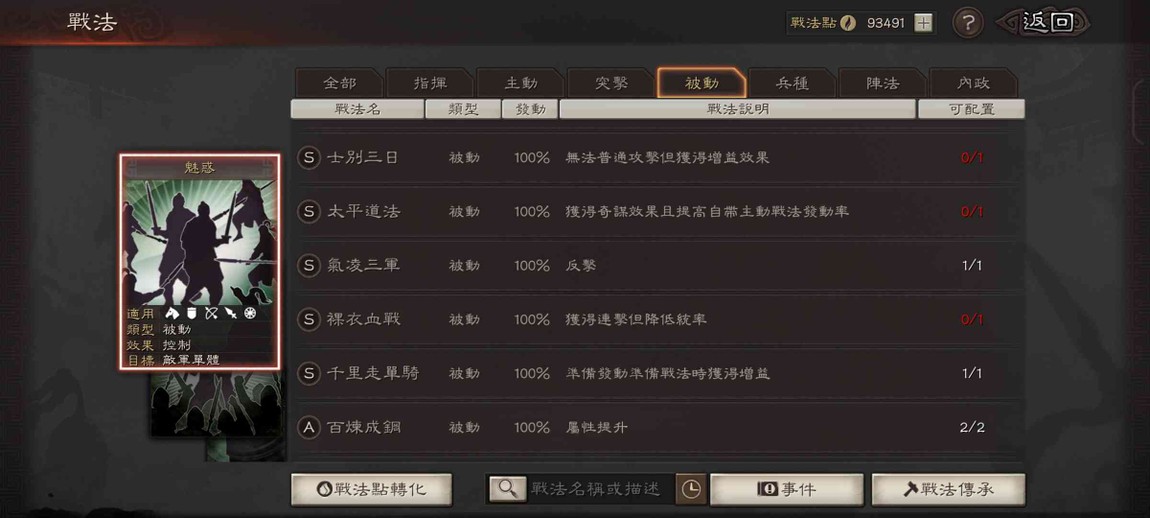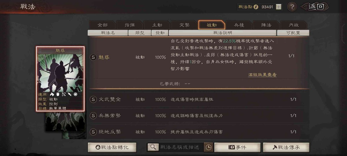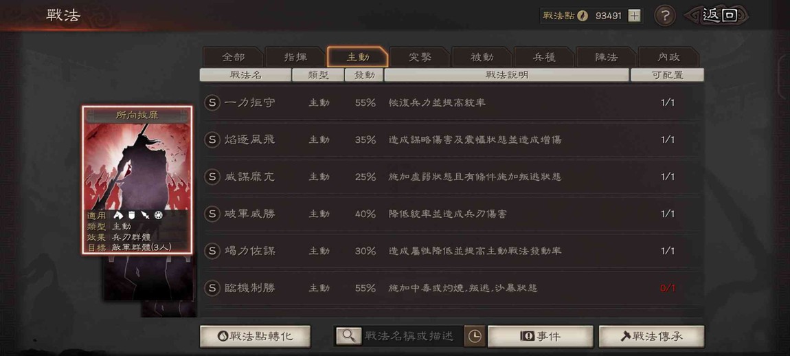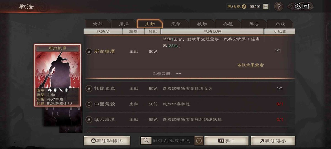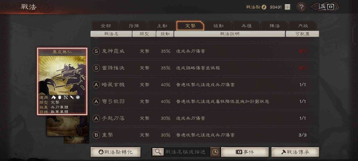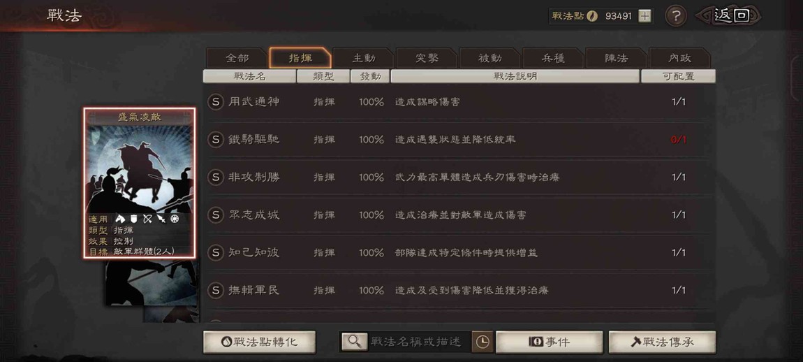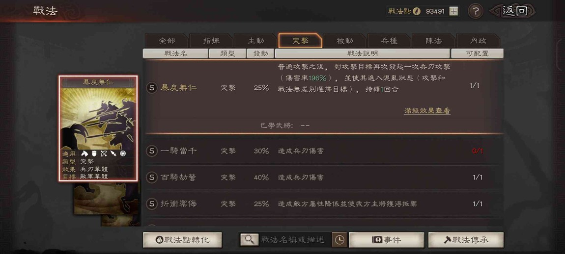 1:踩踏、熊烈、天公、無雙、武聖、援助、昭烈