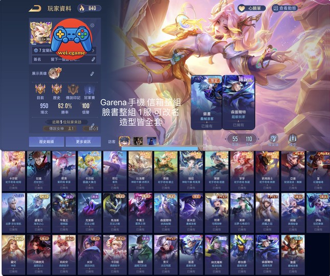 【Garena帳有綁定、璀璨傳說、無VIP、55英、110造】卡芬尼新年貓蟲 虎杖 蜜莉姆 多新年 森圖超級玩家 馬洛厄災 牛靈冥