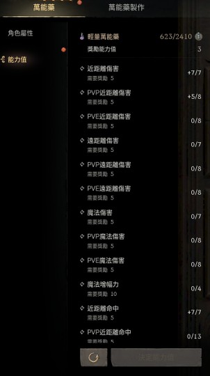 【萬能藥水】:萬能藥30滿,輕量623/2410(擴5/10)
