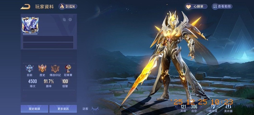 【Garena帳有綁定、璀璨傳說、V4、121英、306造】退遊 歷史璀璨 高場高勝率