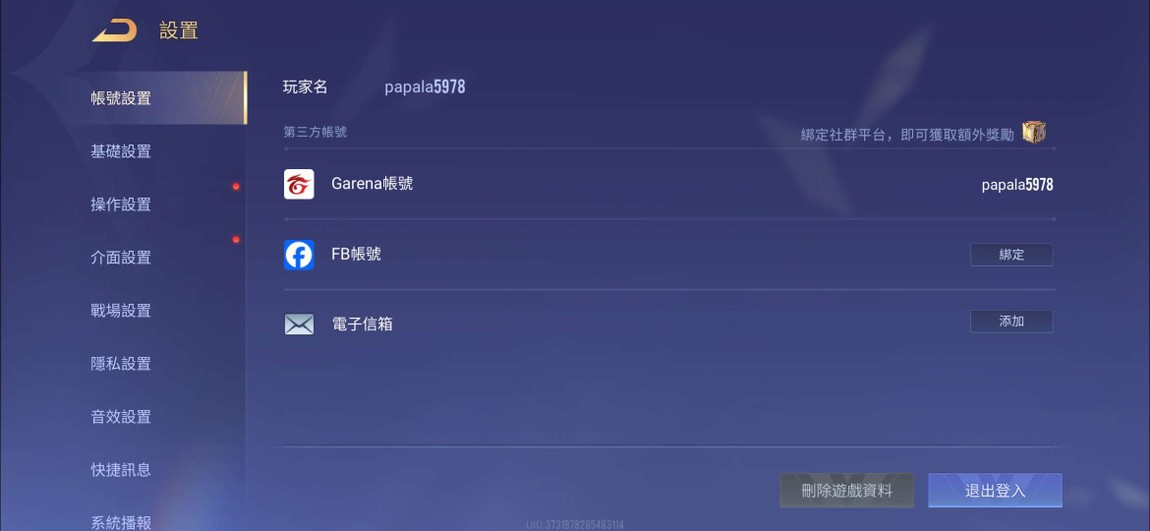 物品種類: 帳號