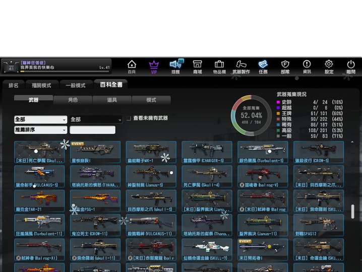 黑市王牌全蒐集、末日強力武器全蒐集