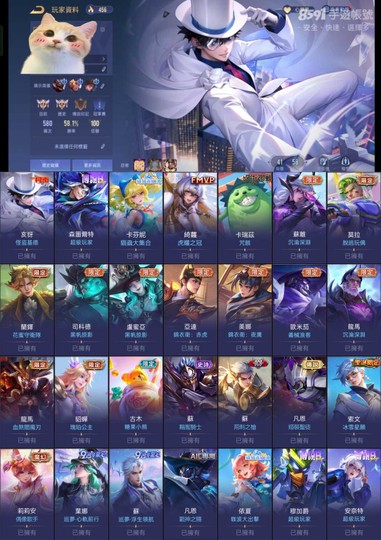 【Garena帳無綁無連、星耀、V4、41英、58造】基德全套、森圖超級玩家、卡芬貓蟲全套、虎耀