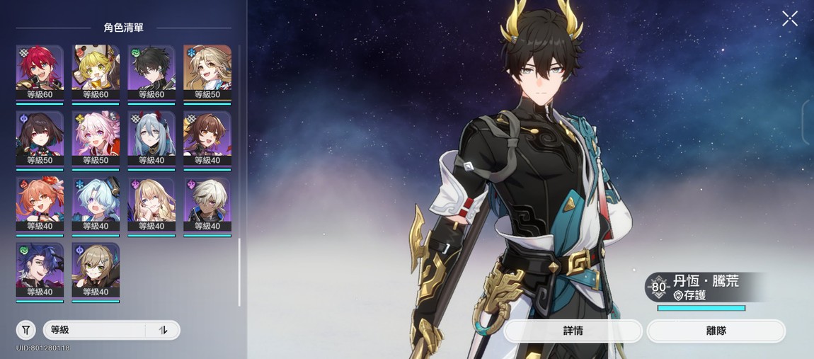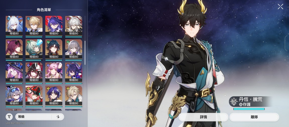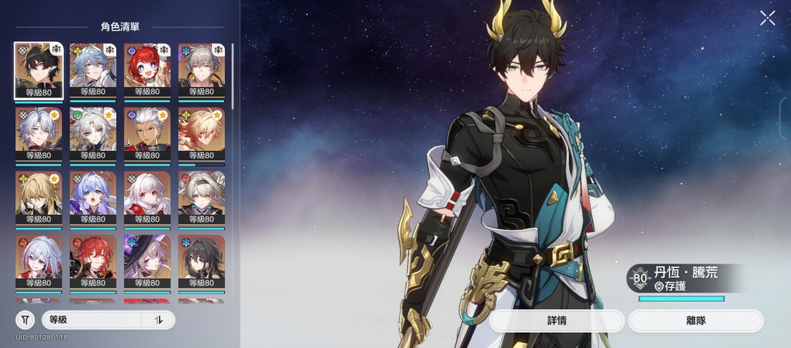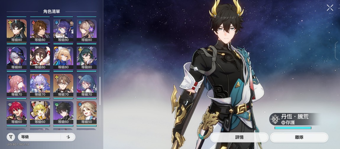 【男、70等、57金角、27金專】男角廚號,角色含星魂共67,3.0男角齊,餘174抽(含星瓊),再20抽角色大保