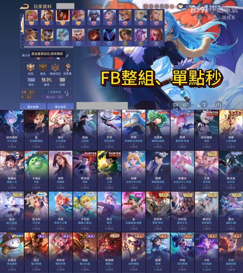 【純FB帳、絕世傳說、V10、124英、467造】4全服/雙次元/10000點券/其餘詳圖