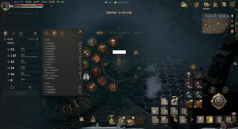 set1: 無視遠迴+1 無視遠距離傷害減免+1 PVE遠傷+7 PVE遠命+1 MP藥水恢復量+1