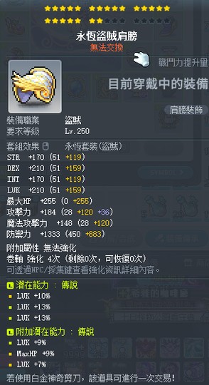 【22星永恆盜賊肩膀】36%+16%LUK