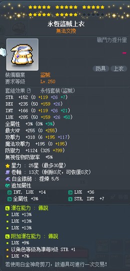 【永恆盜賊上衣】雙傳25星39%幸永恆盜賊上衣 附加97幸大雙 白5全b~